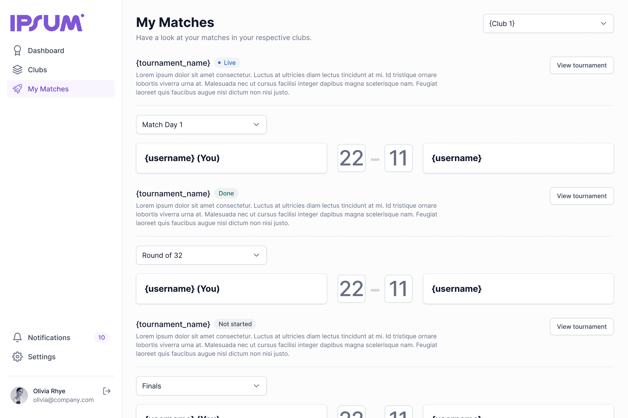 As a player, it’s important to keep track of your own matches. For this purpose, users have a dedicated tab called “My Matches” where they can follow their games across different tournaments.
