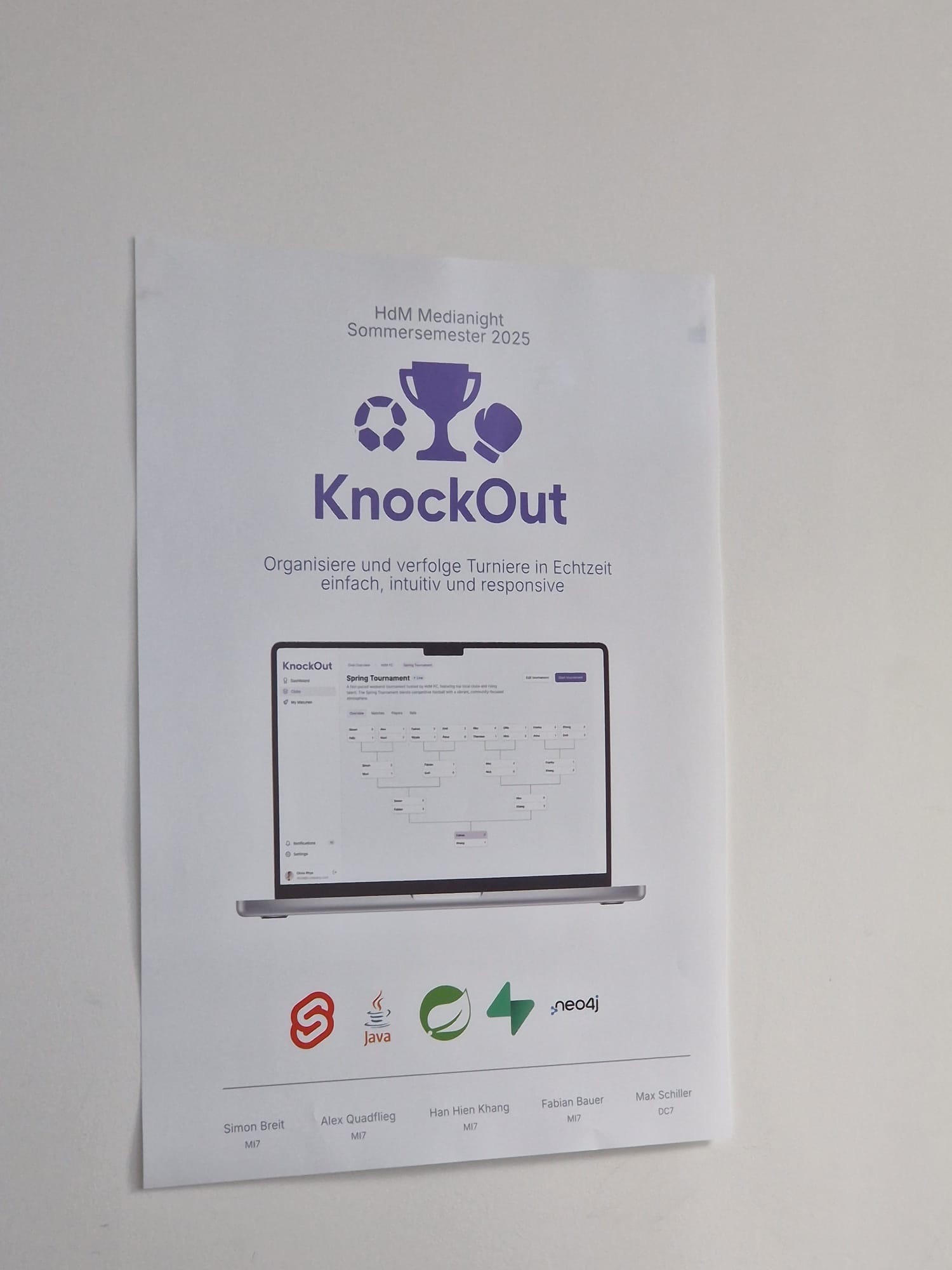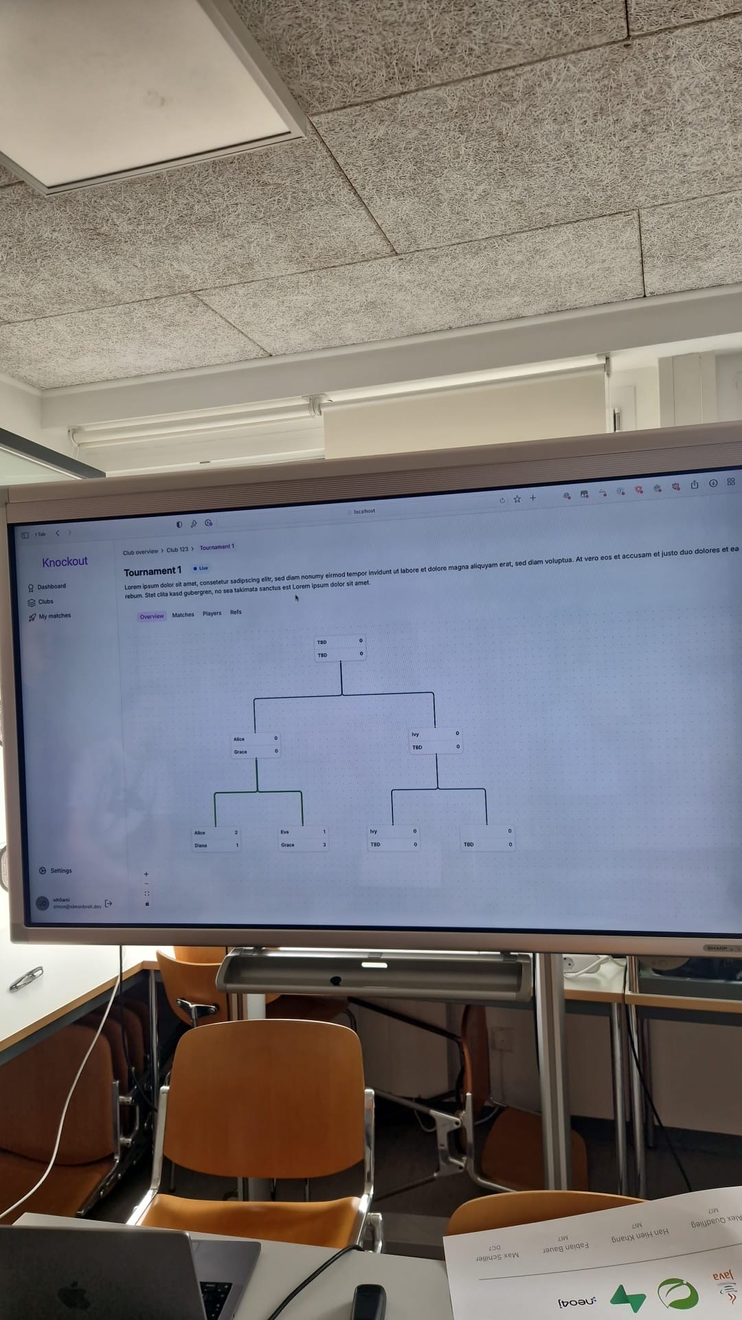 The vision behind Knockout is to provide users with an intuitive and engaging tool to create, simulate and manage tournaments of any kind. Instead of relying on spreadsheets or manual organization, the goal is to make tournament planning accessible and enjoyable for everyone. The product aims to combine clarity and structure within one cohesive interface.